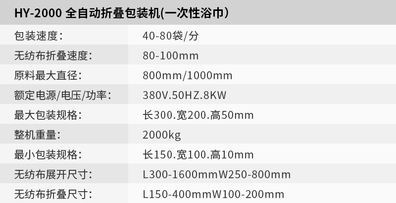 2、本機適用35-120克無紡布分切包裝,解決了國內巾機無法完成太厚無紡布、克重太大無法分切的技術型難題。