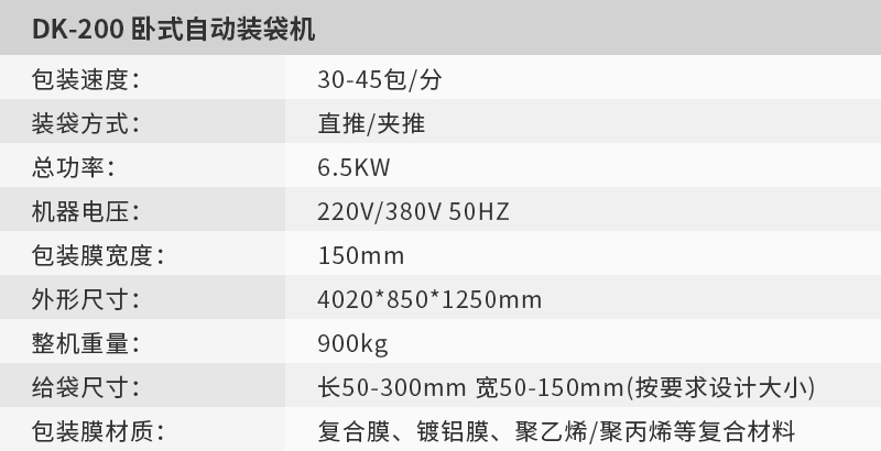 DK-200臥式自動裝袋機