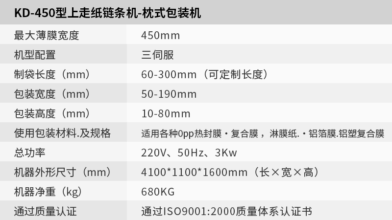本款枕式包裝機是一種包裝能力非常強,且適合多種規格,用于食品和非食品包裝的包裝機。它不但能用于無商標包裝材料的包裝,而且能夠使用預先印有商標圖案的卷筒材料進行高速包裝。本品采用雙變頻控制,袋長即設即切,無需調節空走,一步到位,省時省膜;轉動系統簡潔,工作更可靠,維護保養更方便。定位停機功能,不粘刀,不費膜;所有控制由軟件實現,方便功能調整和技術升級,永不落后。