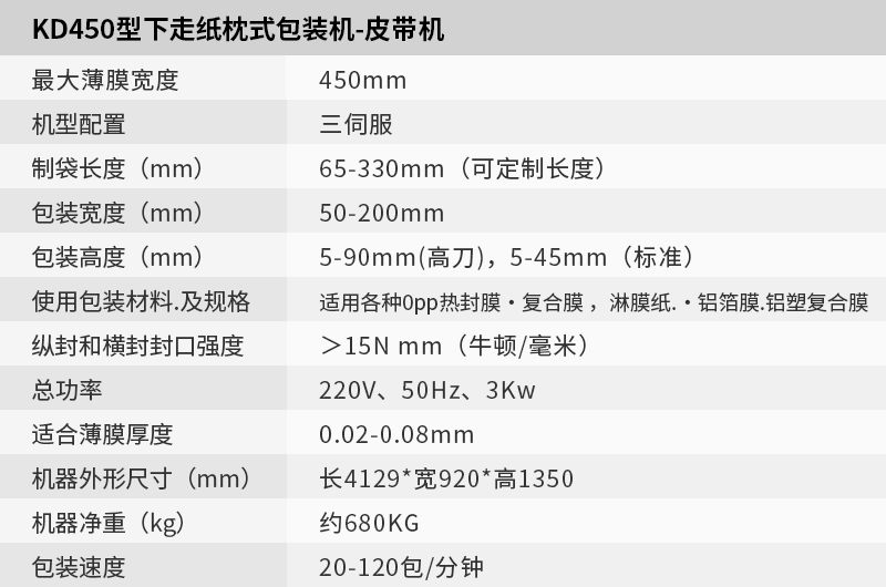 KD-450下走紙枕式包裝機(jī)-皮帶機(jī)